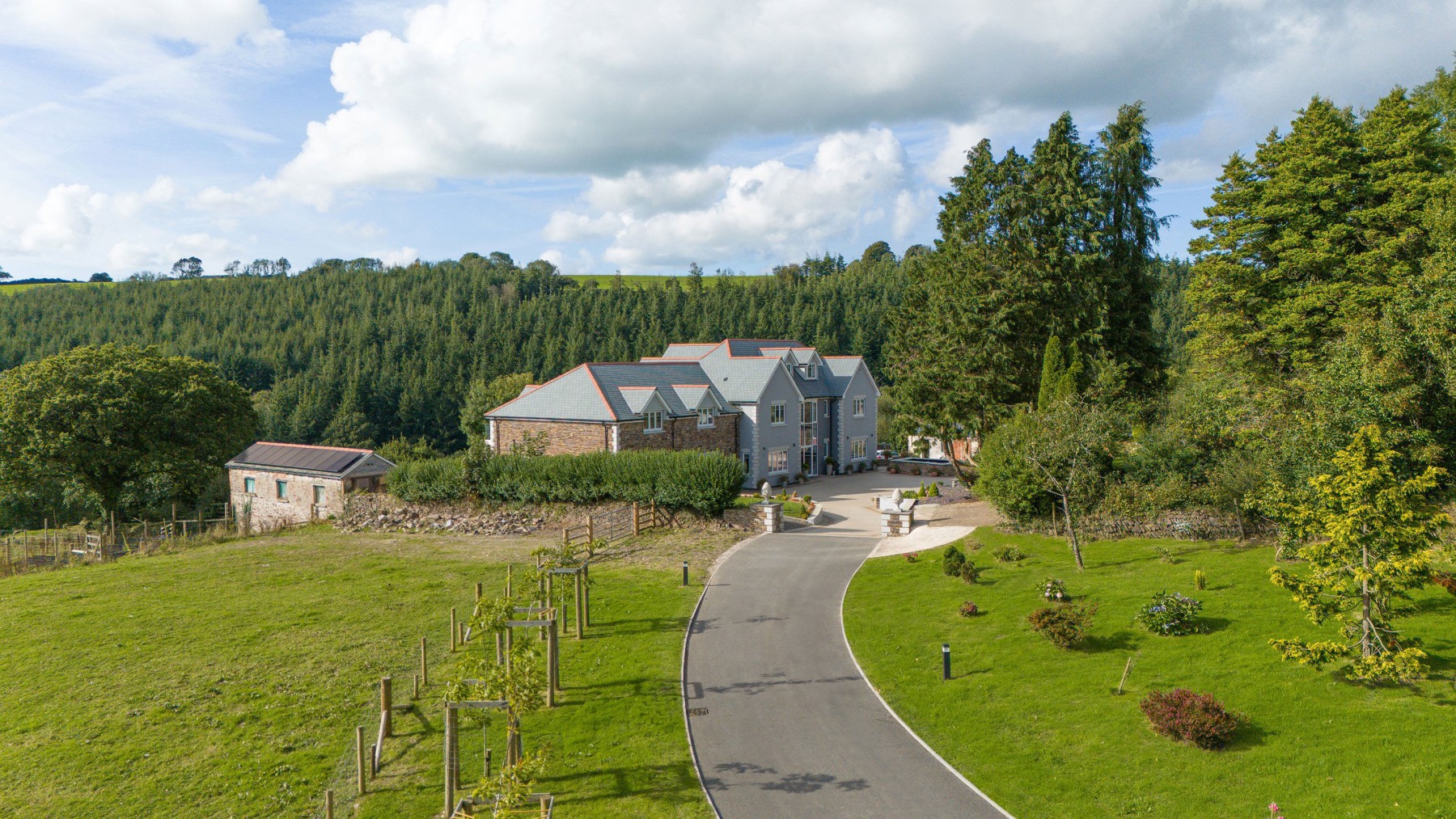 NPAS was commissioned to design a replacement dwelling at Chumhill in Bratton Fleming, set within the beautiful countryside. This bespoke design seamlessly blends modern aesthetics with traditional influences, creating a home that is both functional and visually appealing. The dwelling is crafted with light grey render and features a gable roof reminiscent of traditional style cottages, complemented by contemporary architectural elements.